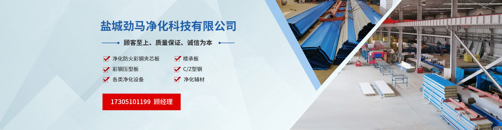 鹽城勁馬凈化科技有限公司是一家專業生產凈化防火彩鋼夾芯板、彩鋼壓型板、C/Z型鋼,樓承板的廠家,并銷售各類凈化設備,凈化輔材的多元化企業。